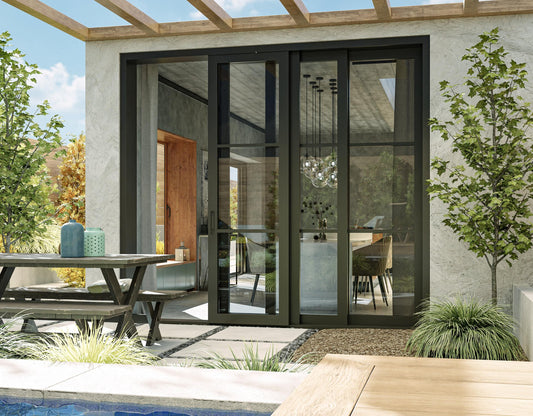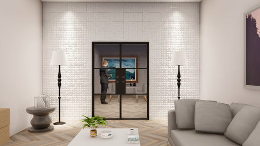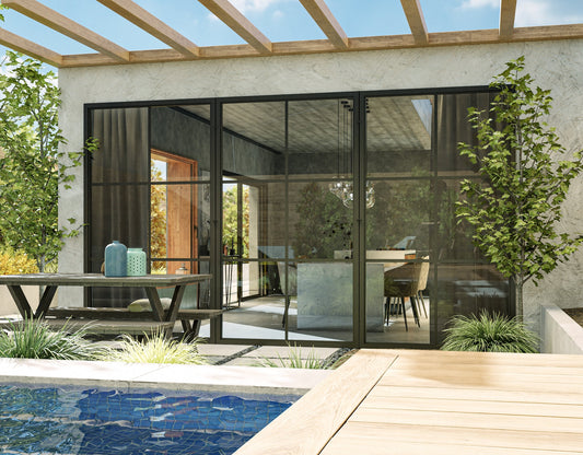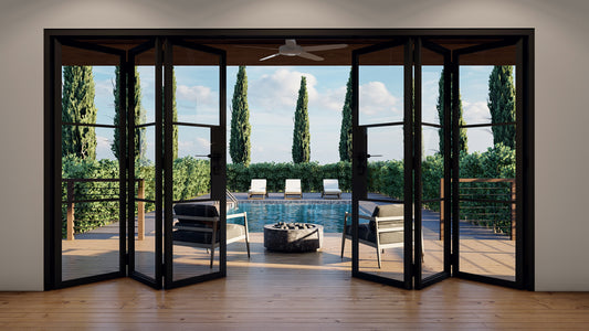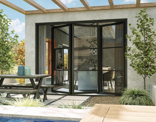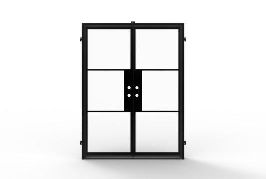 Doors are calibrated & pre-hung at factory. All accessories including hinges, mounting tabs, T-astragal, roller catch, threshold, weather-stripping & sweeps come installed.