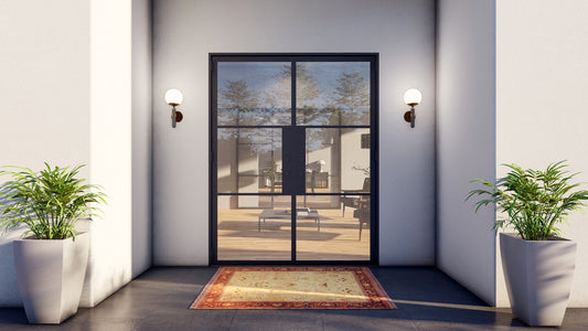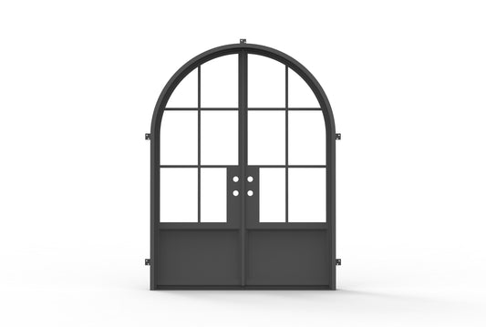 All of our wrought iron doors are hand made with 12-gauge steel (30-50% thicker than others), solid scrollwork, thermal insulation, and 5/8" dual paned tempered glass.