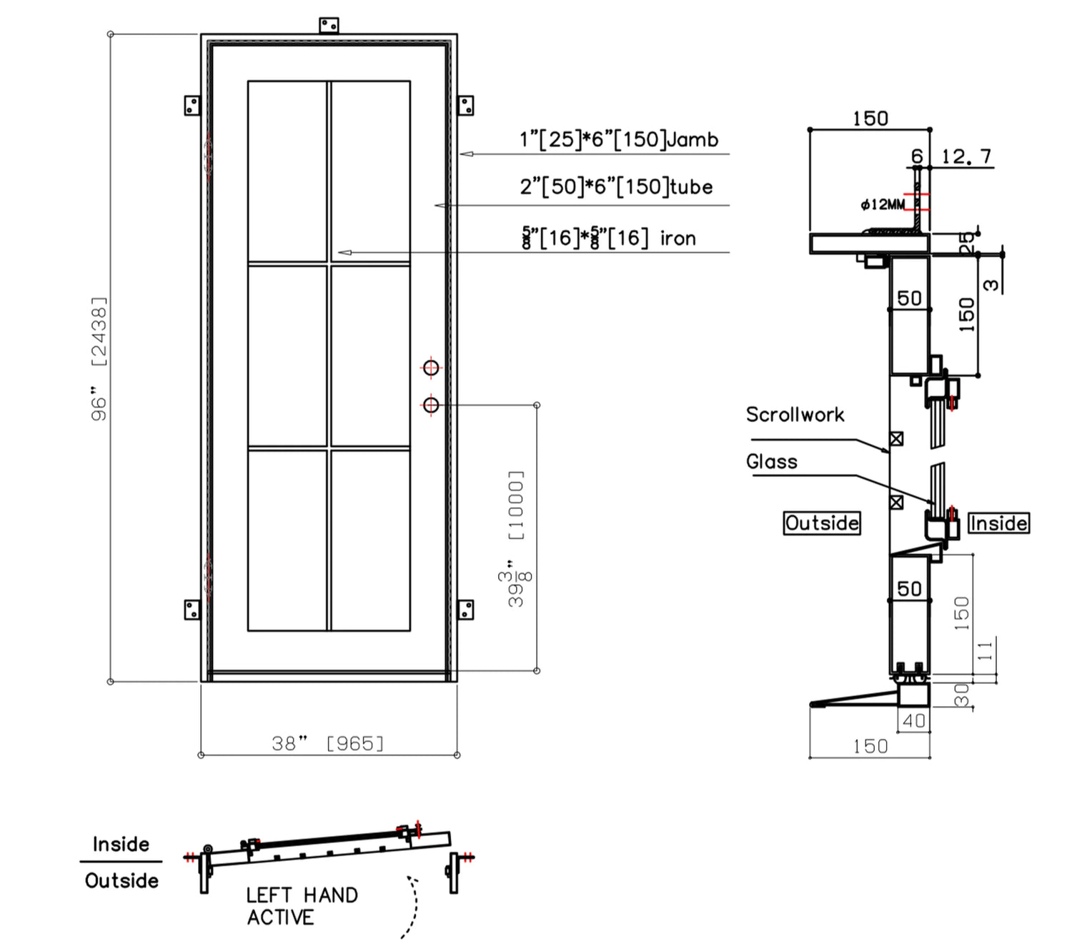 Our experienced designers can customize any size, design, color, glass, and swing to make the perfect one of a kind custom iron entry door