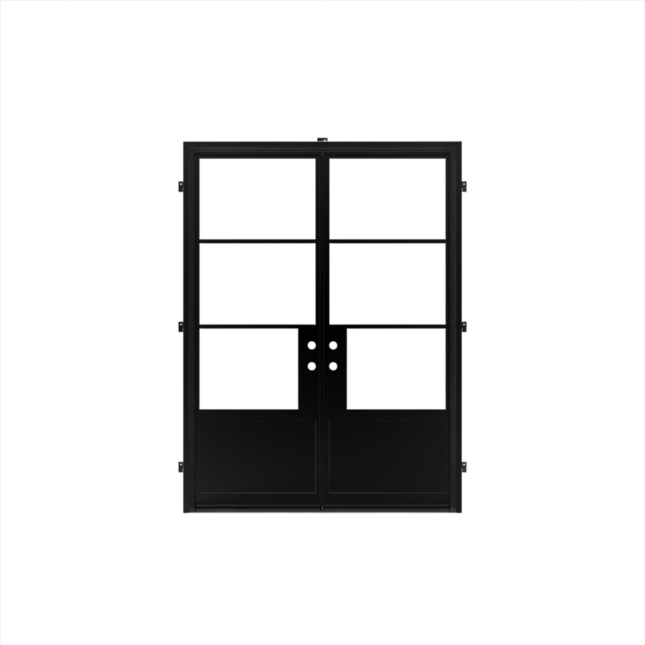 Pre-Order: Light 3 - Double + Kickplate | Steel French Doors (Ships 16-18 Weeks)