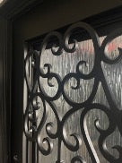 We use 5/8" tempered dual pane glass with glass already installed in our wrought iron doors. For custom exterior iron doors, we have over 10 different glass options.